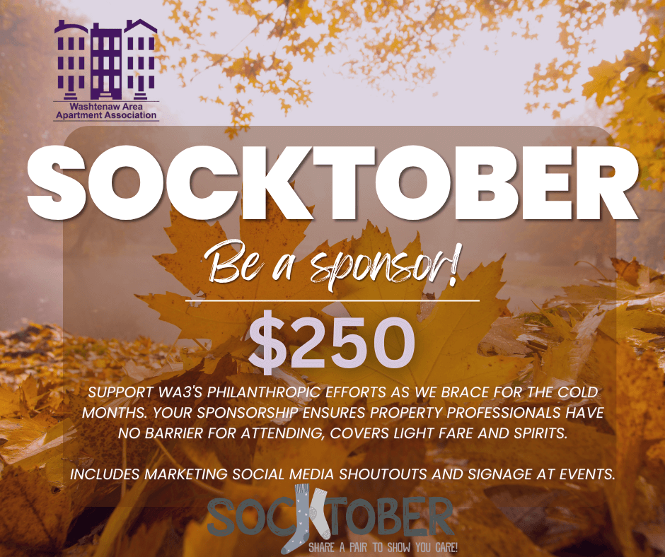 Join the Washtenaw Area Apartment Association for our Socktober Fundraising Happy Hour Mixer—an evening of giving back, great drinks, and meaningful connections!